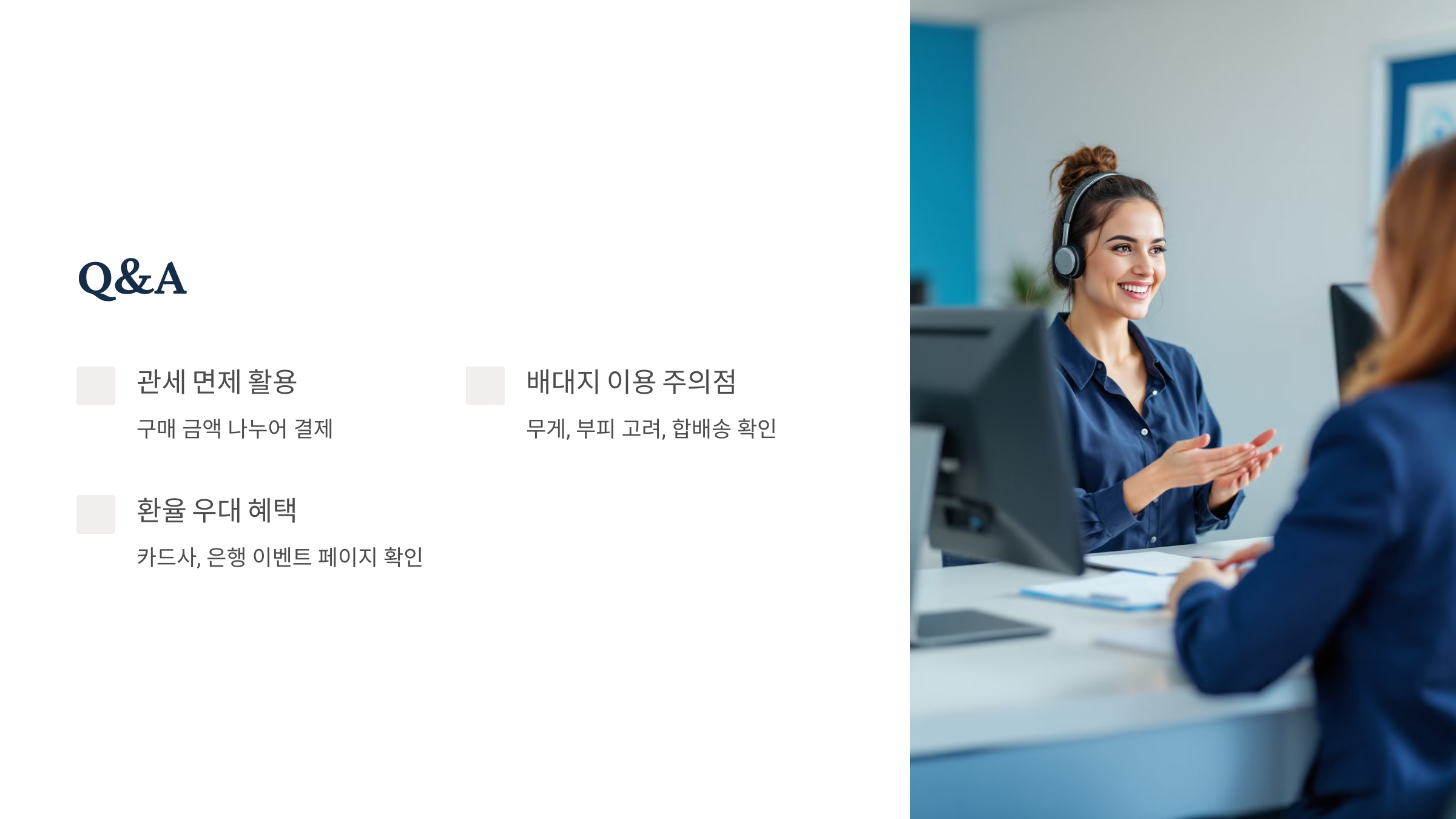 Q1. 관세 면제를 최대한 활용하려면 어떻게 해야 하나요?